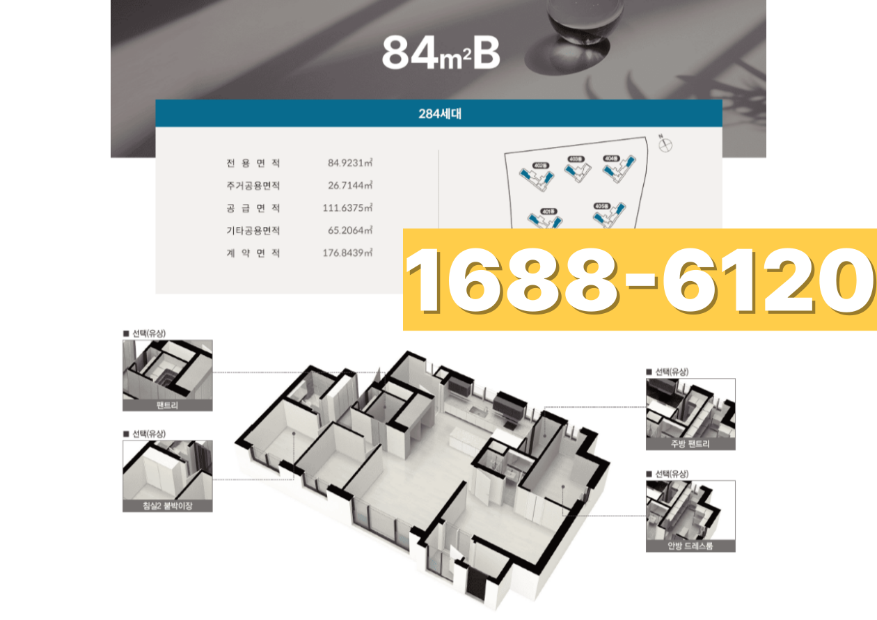 - B타입: 광폭 주방, 팬트리 확장 등 수납 특화 구조 (약 200세대)