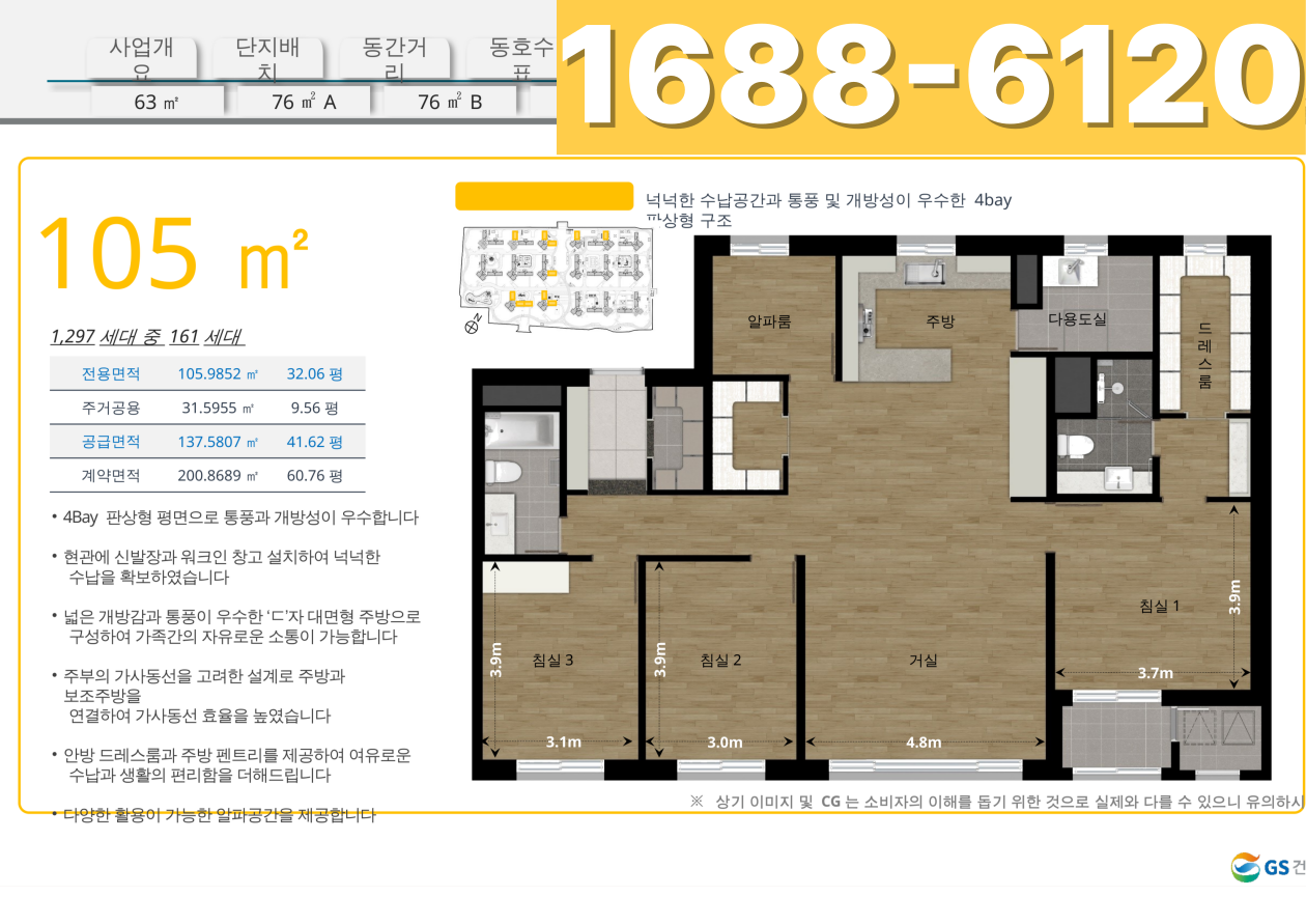 - 모델하우스 방문 및 계약 문의: ☎ 1688-6120 (사전예약제 운영)